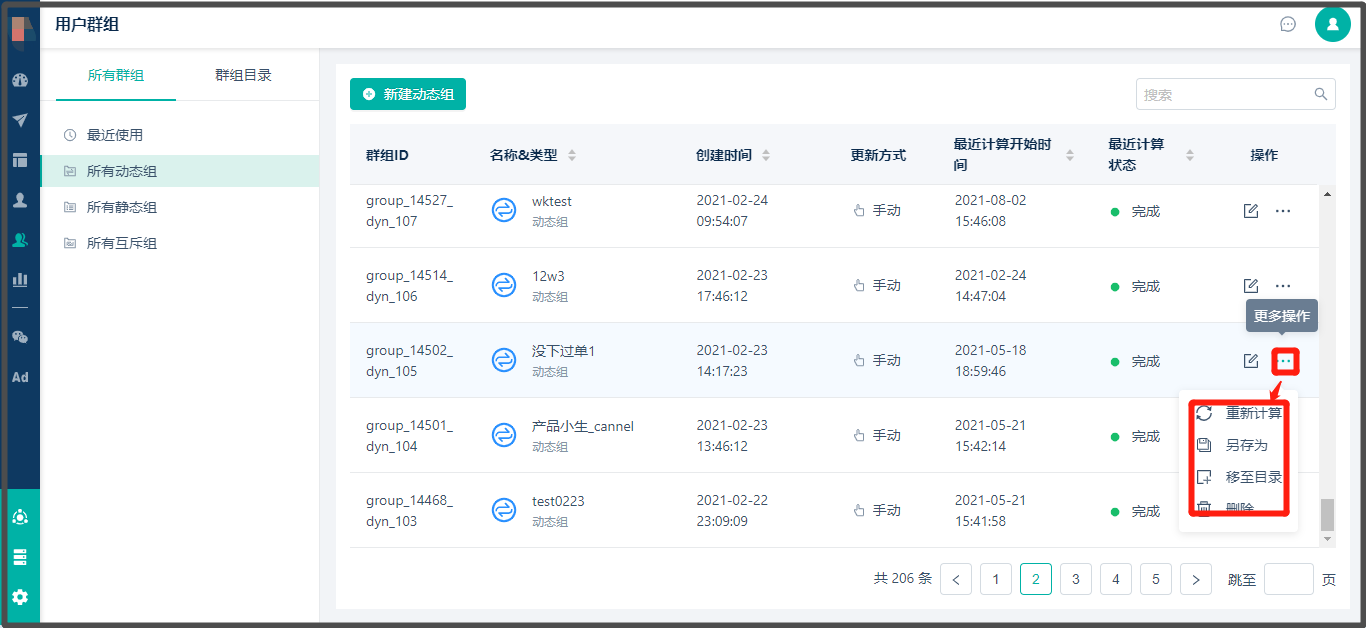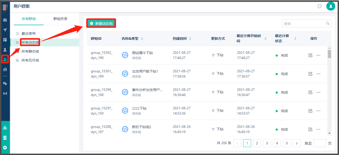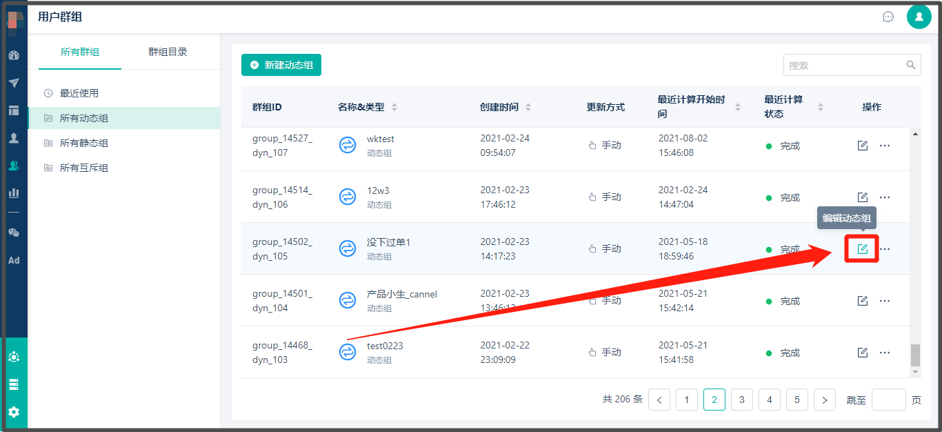 * 路径:【用户群组】> 显示此图案“”的都是动态标签组