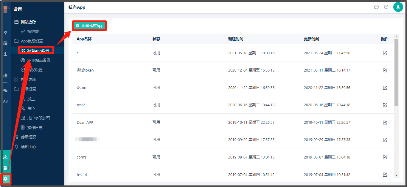创建私有APP(API接口)
