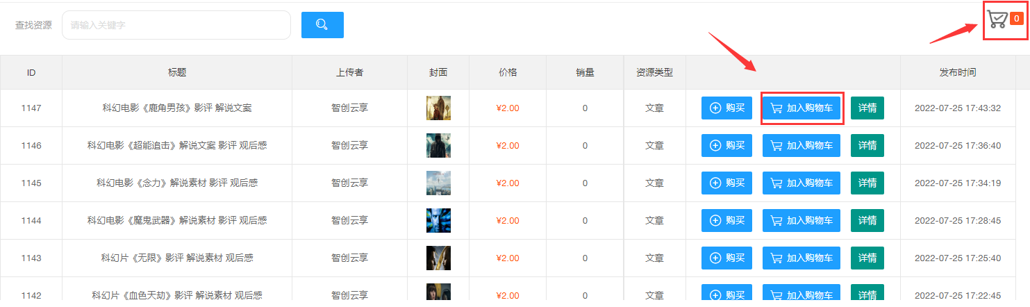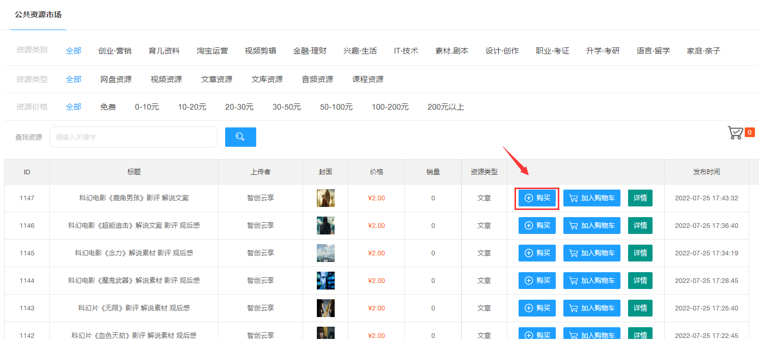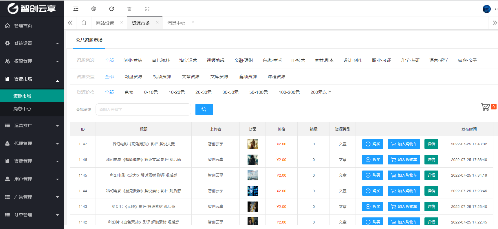 > 资源市场里包含所有网站资源,可在该页面选购所需资源
