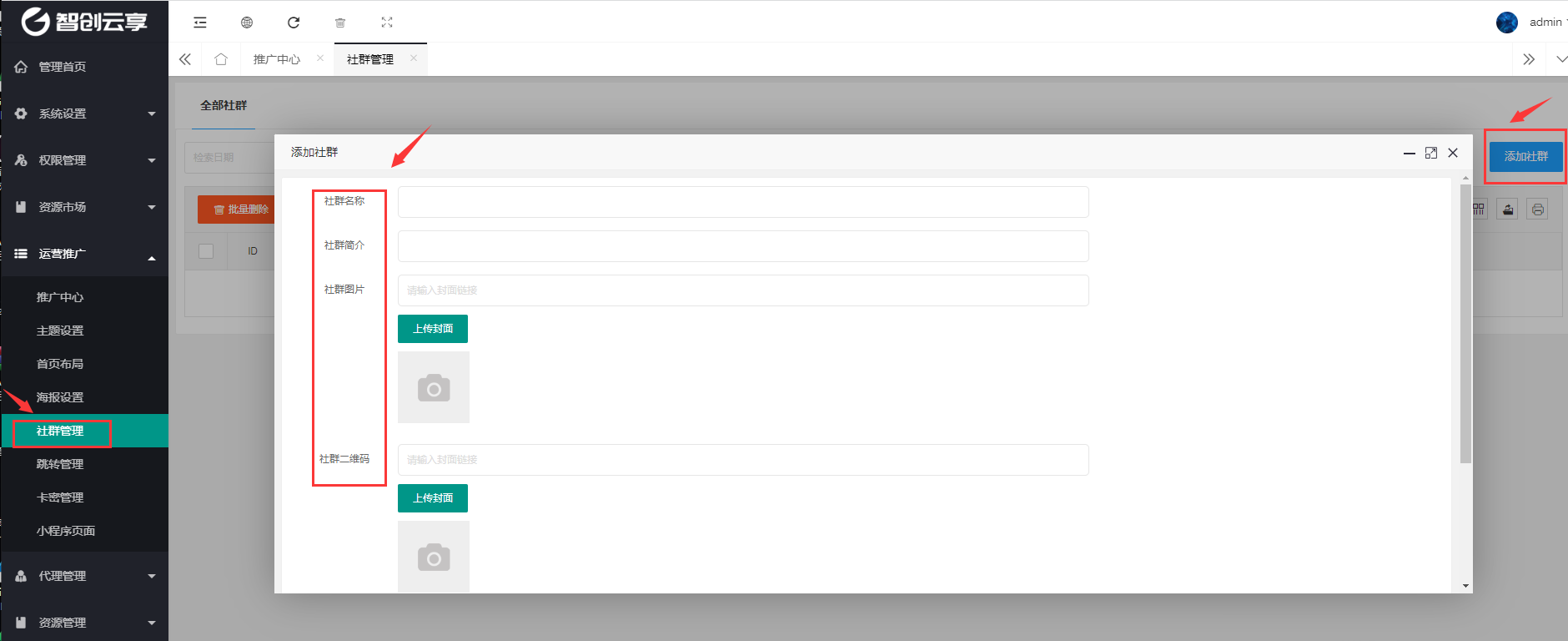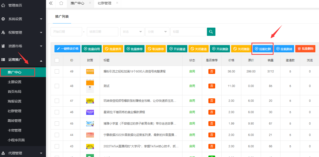> **2、推广中心挂载社群**
