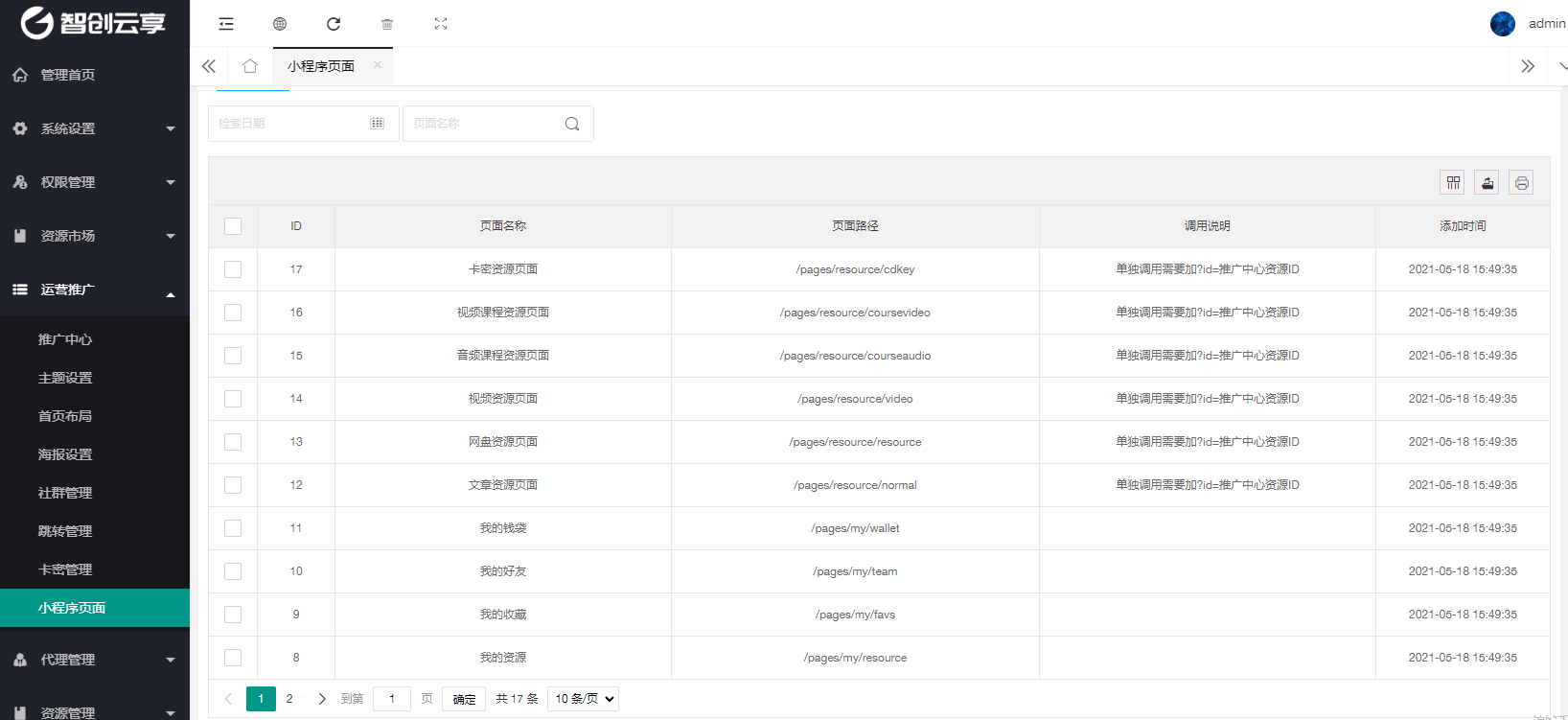 > 前端小程序所包含的页面