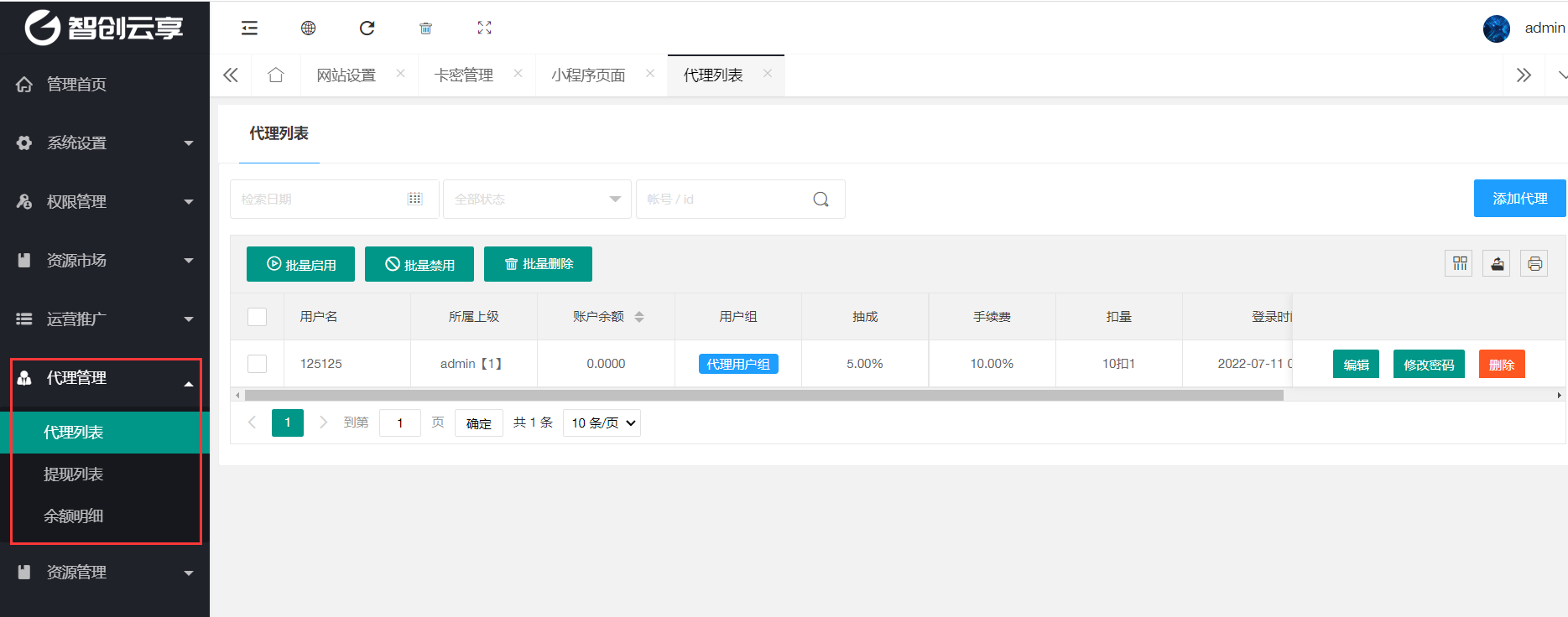 > **4、代理后台界面**