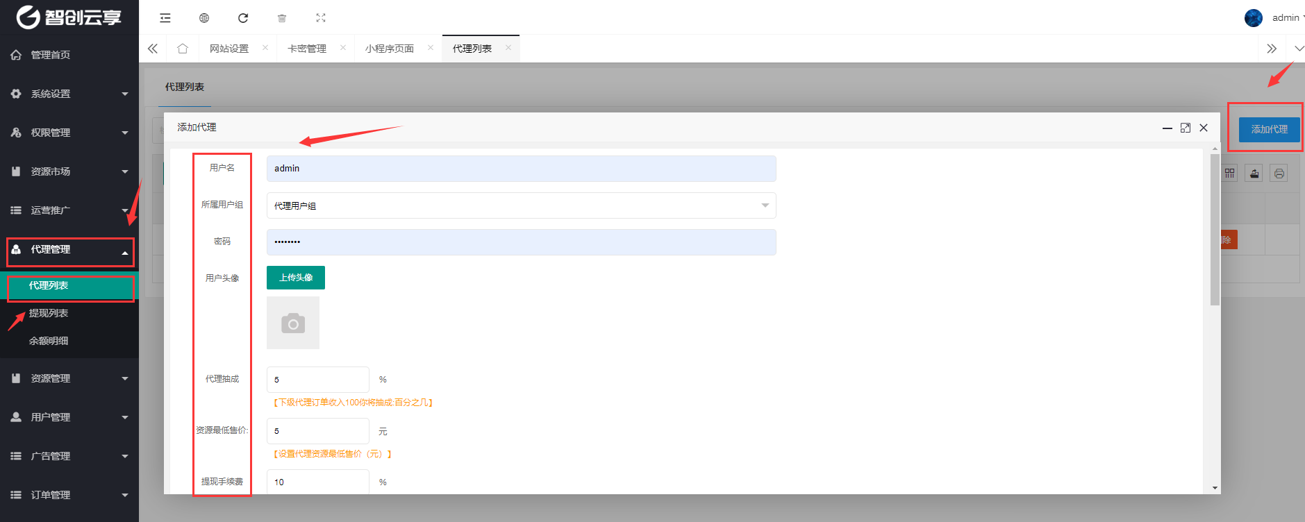 > 2.2、资源最低售价:限制此代理资源推广出售价格