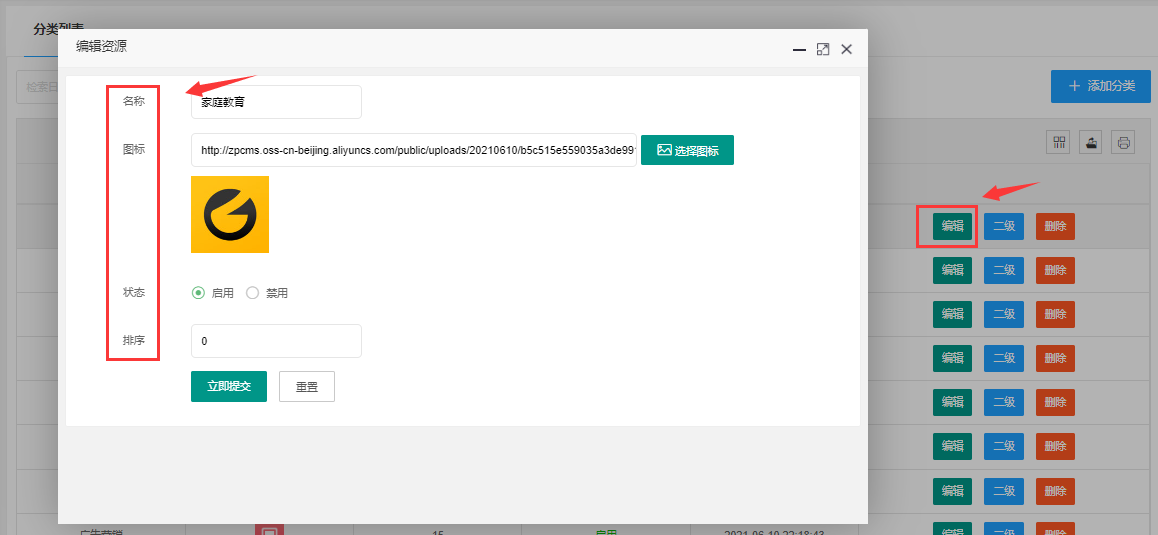 > 2、如何编辑修改分类资源