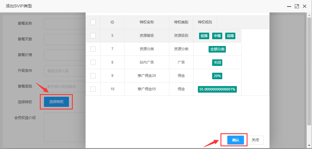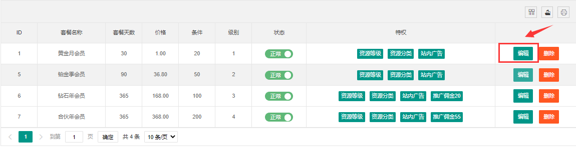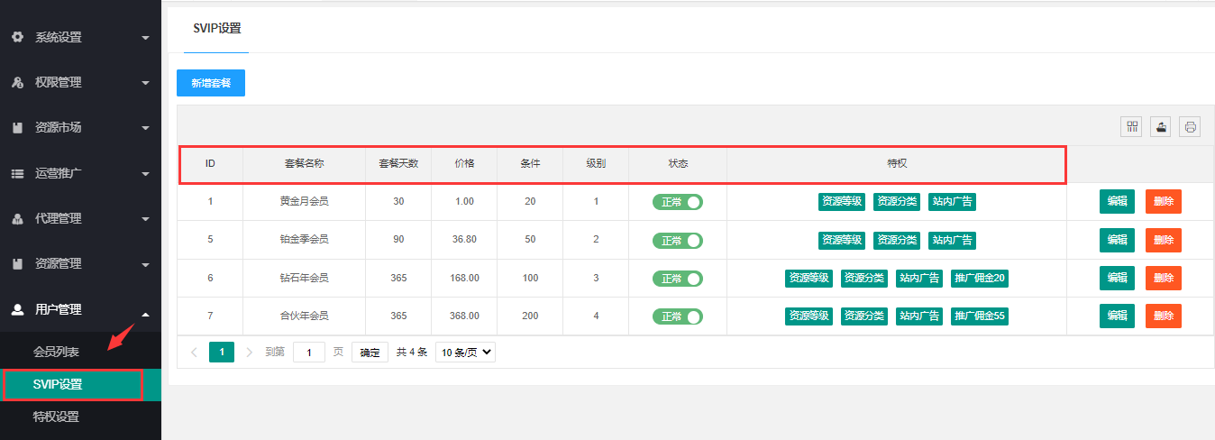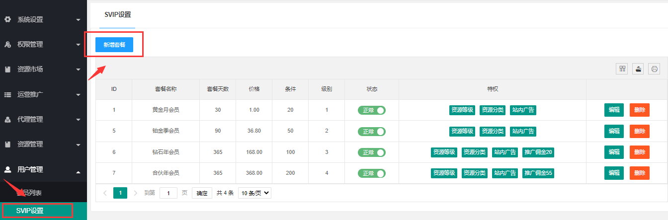 - 会员套餐设置