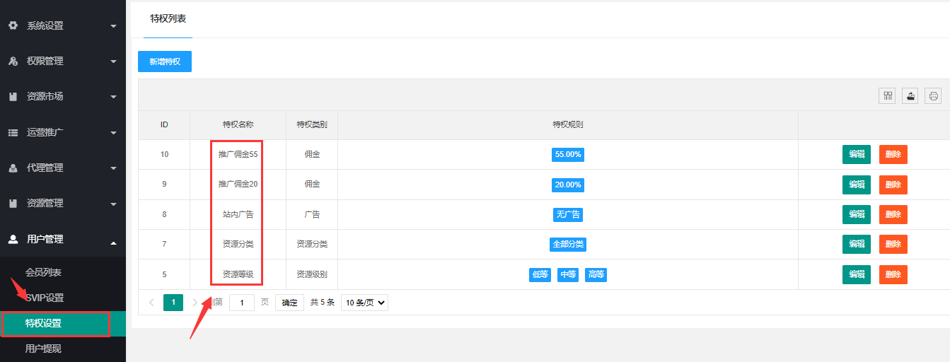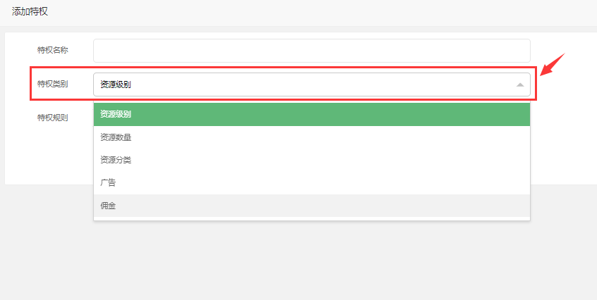 > 2.3、资源分类:即限定用户可免费获得哪些分类下的资源