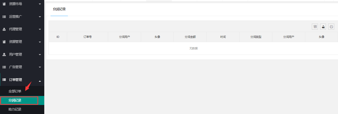 > **分润记录**:在分润记录中可看到用户的分润信息