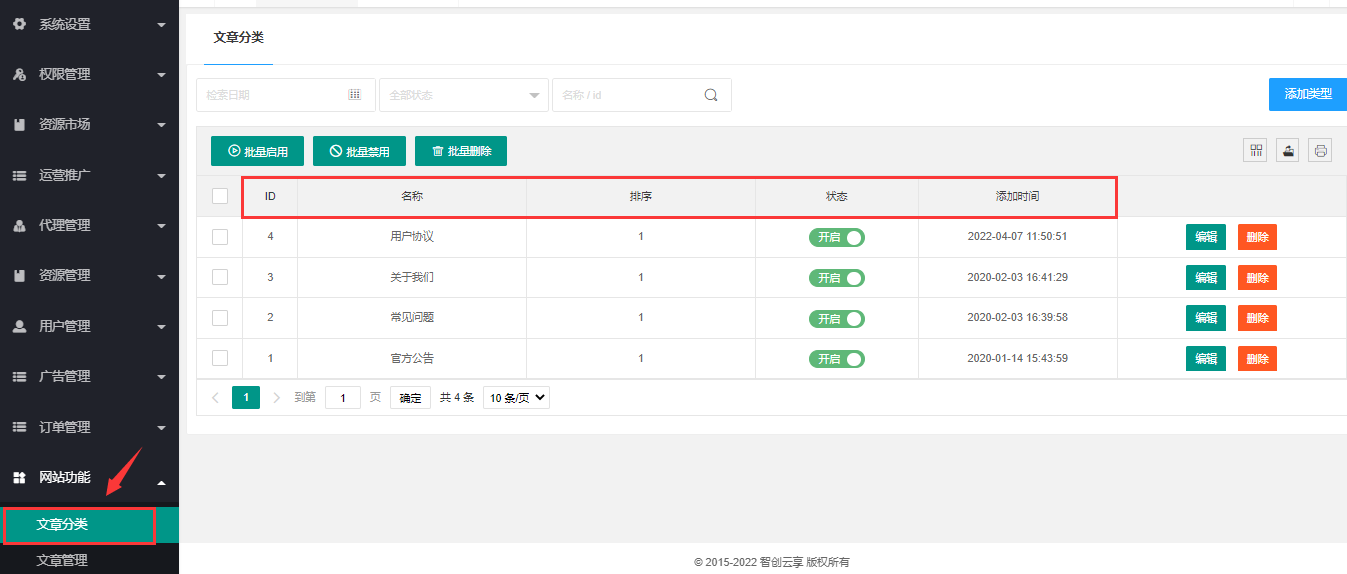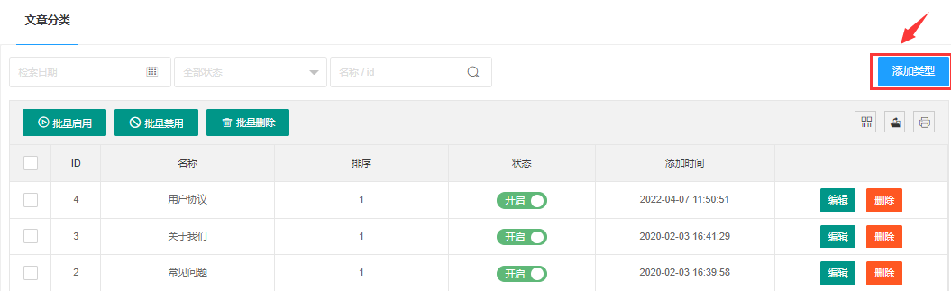 > **1、添加文章类型**