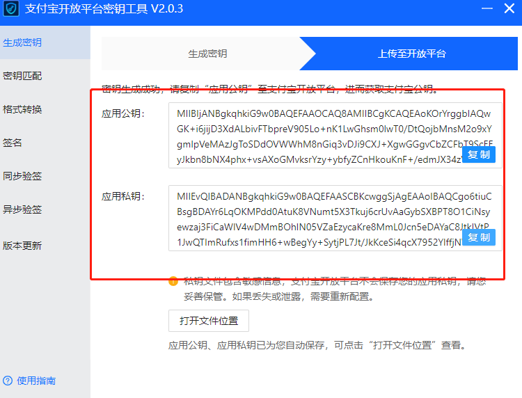 应用公钥和私钥一定保存好