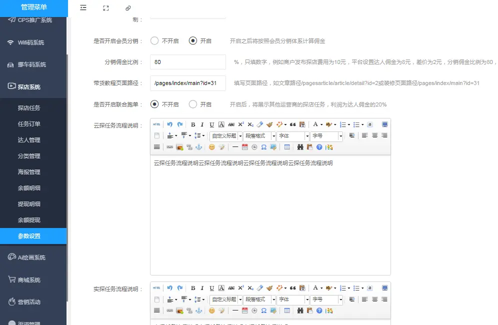 使用探店系统需要先配置参数,请根据每个参数的提示信息进行设置