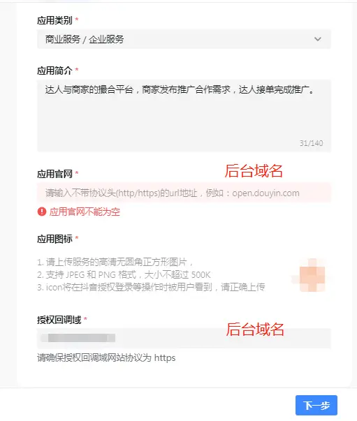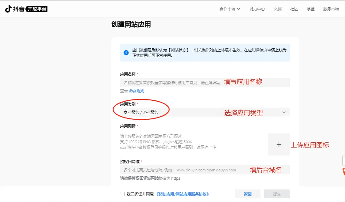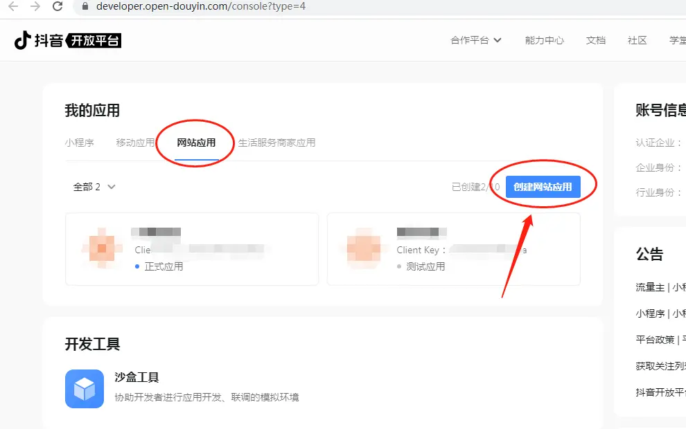 注册时直接选抖音开放平台,不要选抖音开放平台-服务商版。