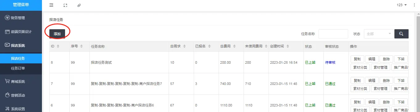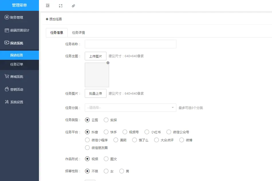 添加探店任务:
