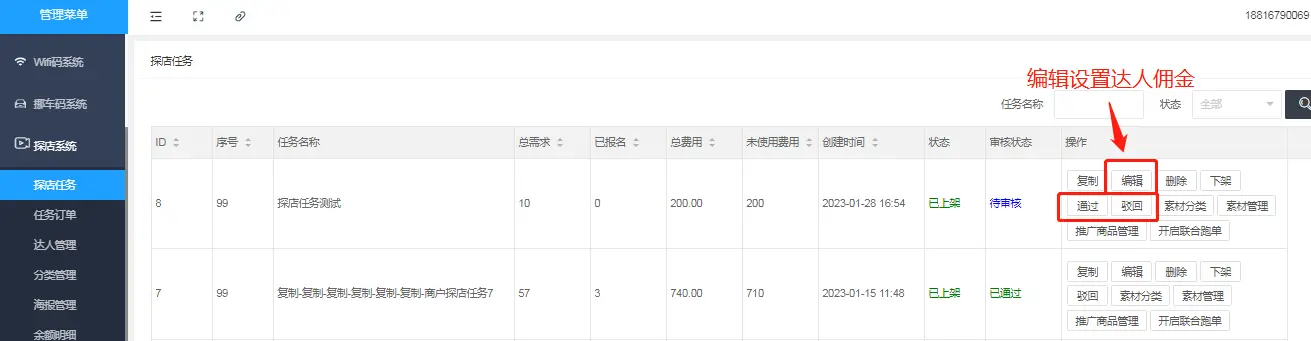 设置好达人佣金并核查素材、推广商品之后,即可审核通过任务,小程序前端即可展示该探店任务。