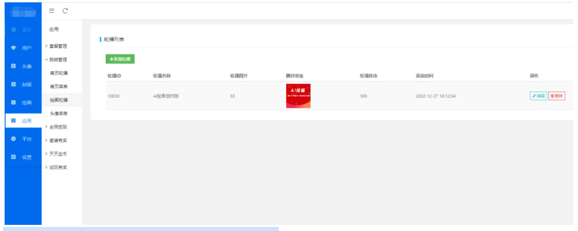 此处可以设置绘画页面的轮播图,指的是前端的AI绘画页面的轮播图