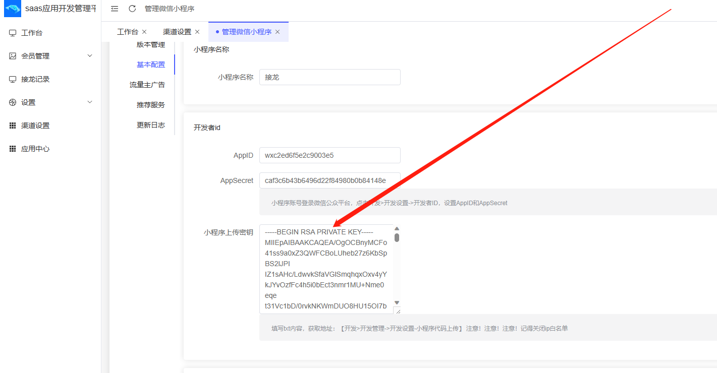 在小程序官方获取小程序秘钥文件后,使用记事本功能打开,复制内容填写到小程序上传秘钥位置