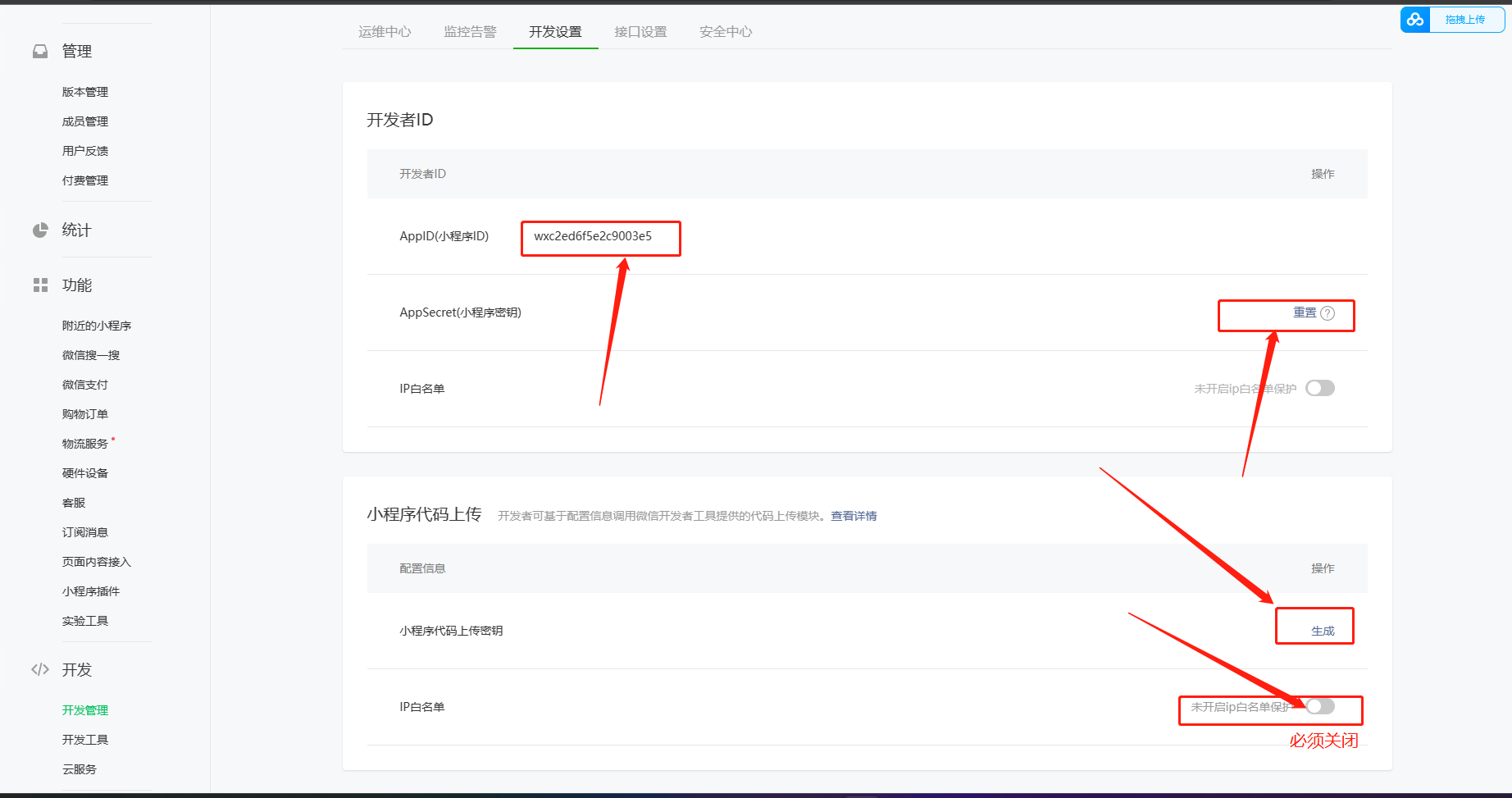 ## 3.配置上传小程序秘钥