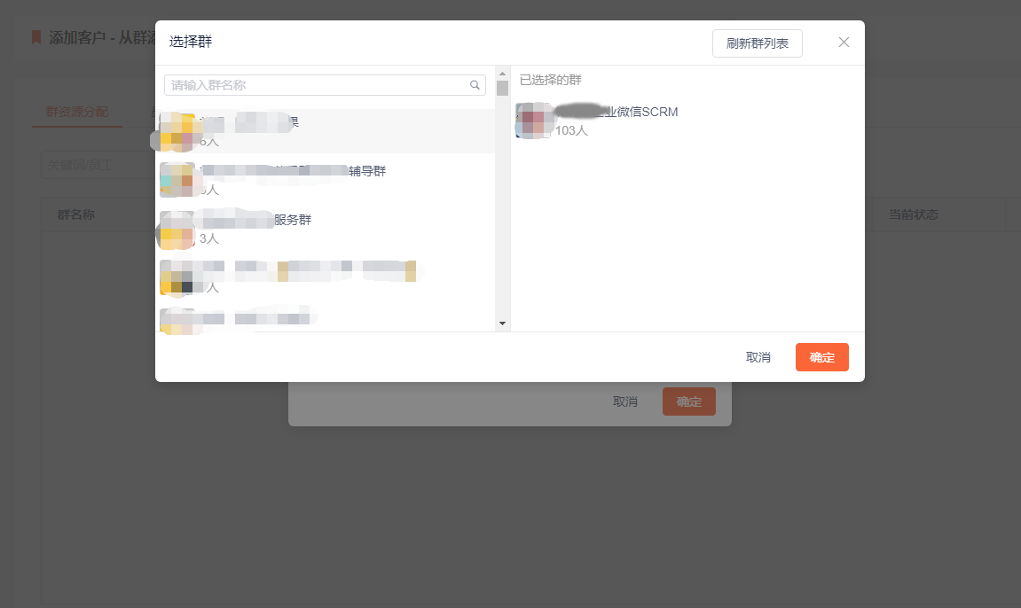 基本与“从号码添加”相同,只是将导入号码改成了添加群。