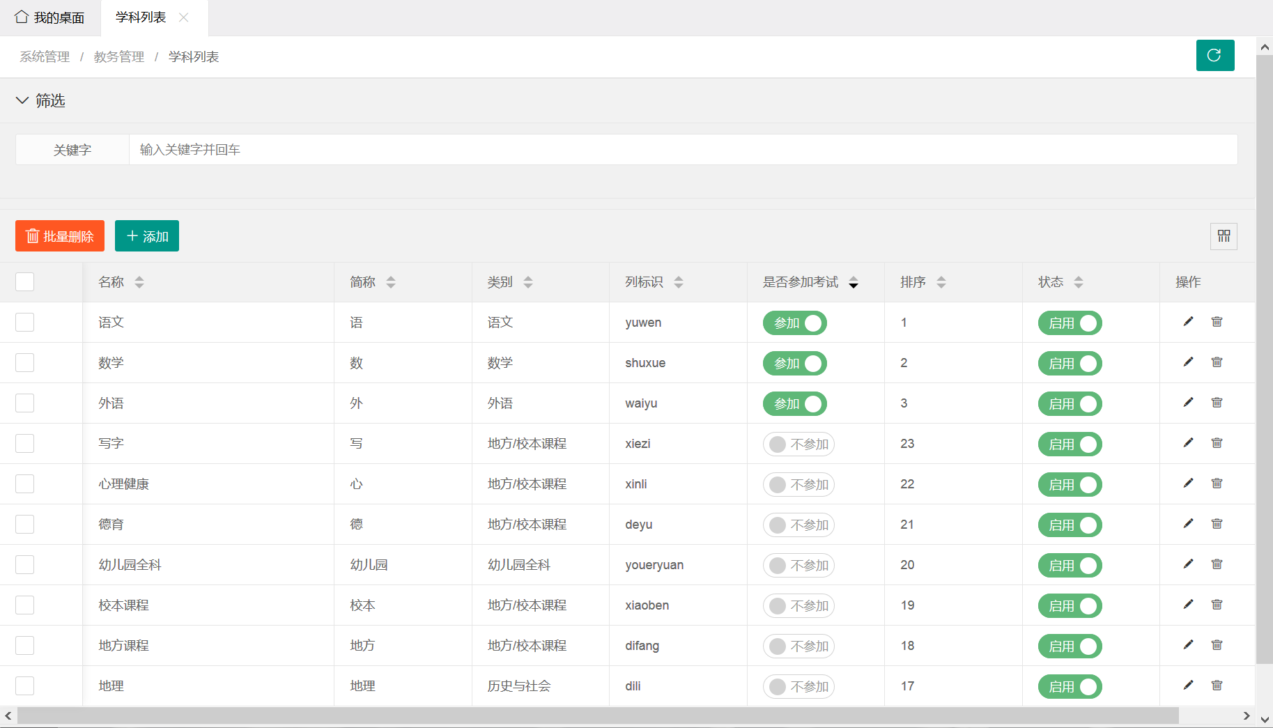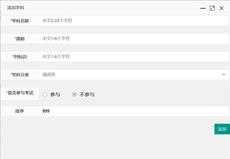 >[success] 学科是基础信息,与教师信息、考试信息产生关联。