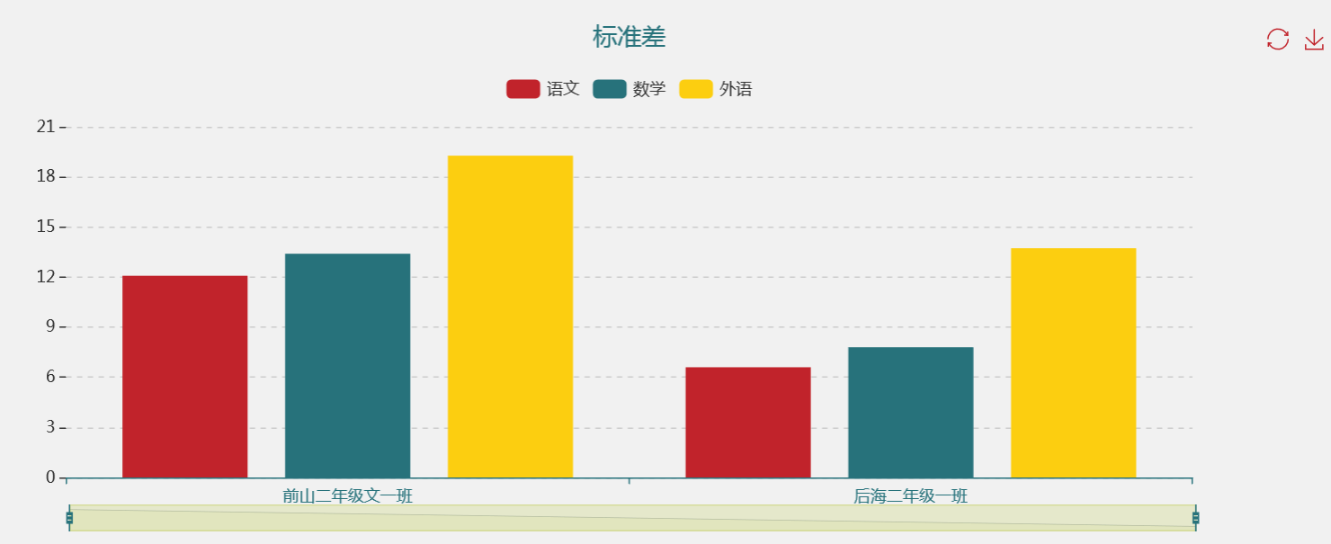标准差选择n-1算法。标准差值越大说明成绩差异越大。