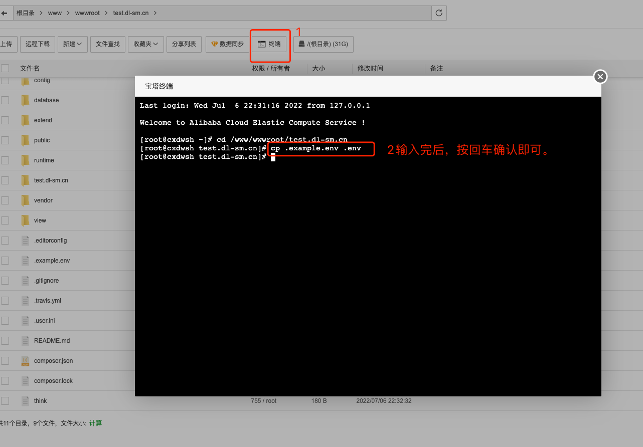 1.在云服务器的控制台中或本地服务器,打开终端(SSH),输入下面内容开始安装