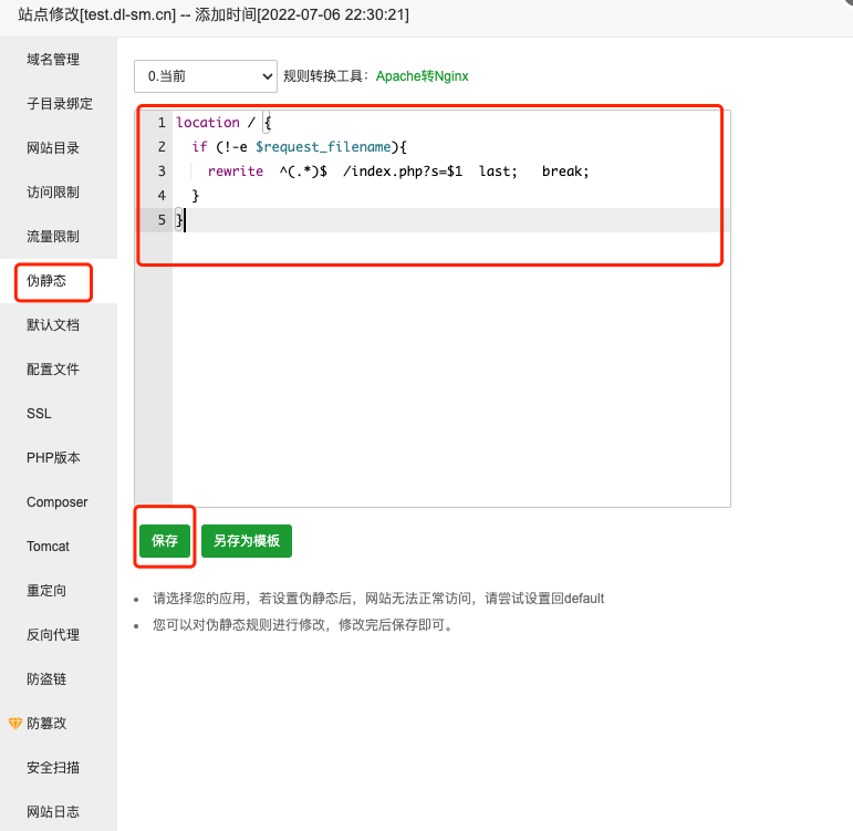 rewrite ^(.*)$ /index.php?s=$1 last; break;
