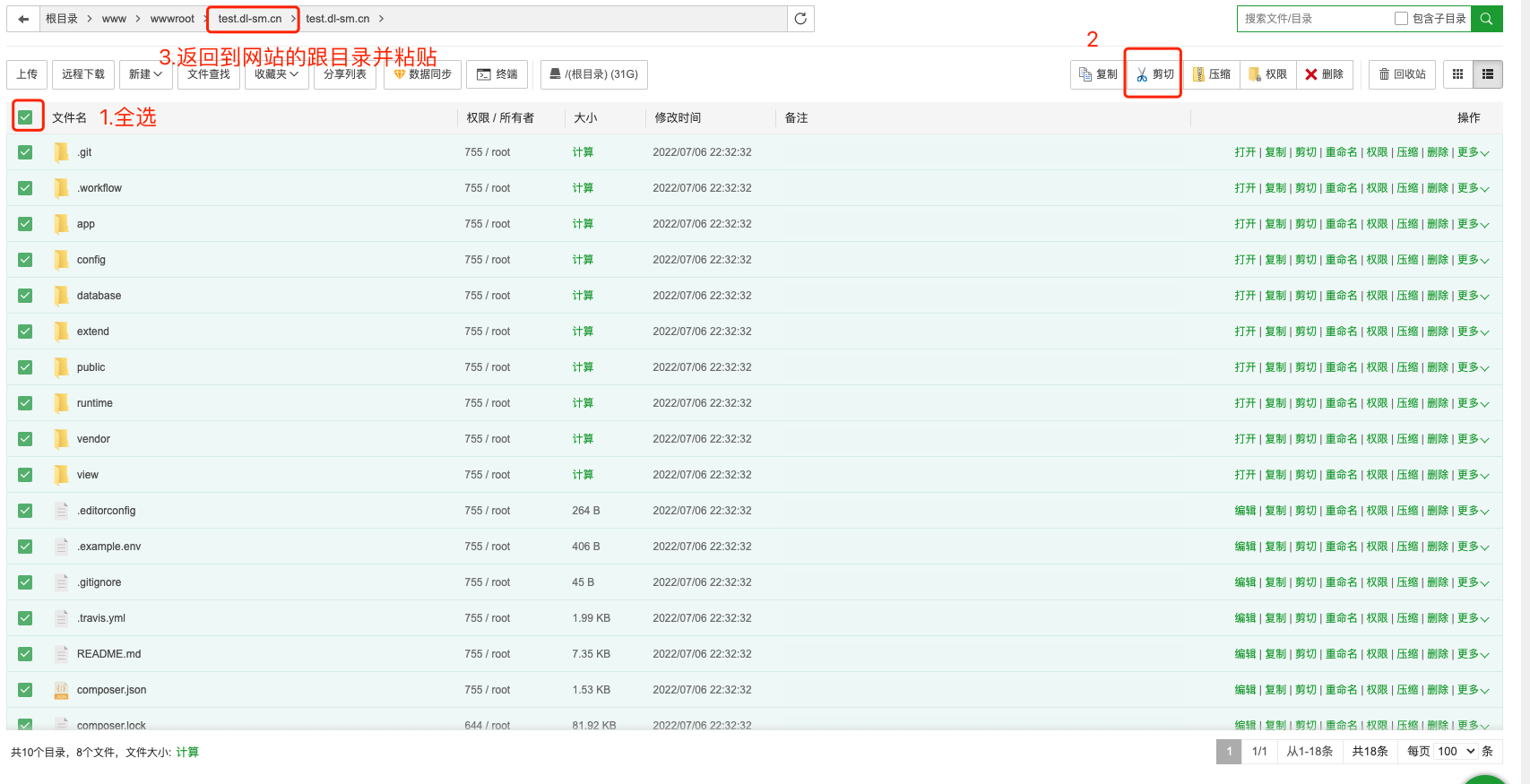 **(4)克隆后会形成个文件夹,点进文件夹,并将文件夹的的所有文件全选、剪切到网站根目录。**