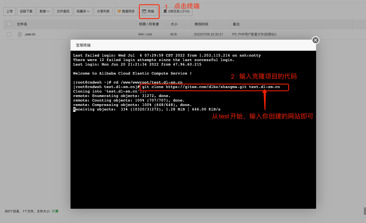 cd /www/wwwroot # 进入宝塔指定存放项目的目录中
