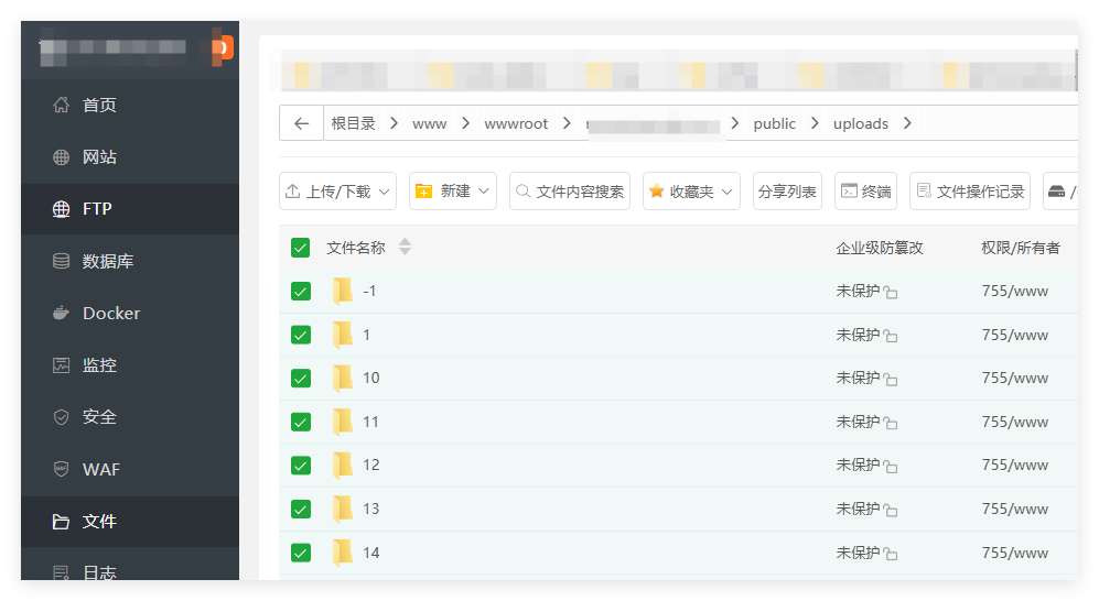文件管理---找到你的站点目录,点击网站目录下的public/uploads目录,然后全选此目录下的所有文件夹。然后点击右上角的压缩。然后将压缩包下载到自己的电脑,然后解压。