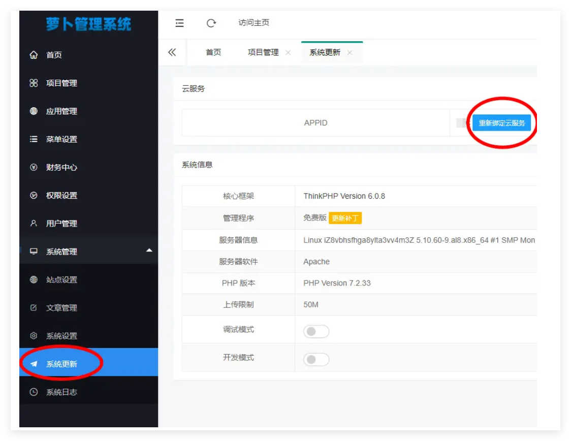 联系客服,发送你的站点域名给客服,客服会发给你站点的appid 和appkey,然后进行绑定云服务