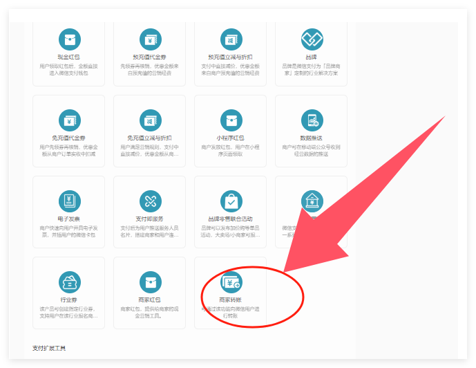 微信商户平台地址:[微信支付 - 中国领先的第三方支付平台 | 微信支付提供安全快捷的支付方式](https://pay.wechatpay.cn/index.php/core/home/login?return_url=%2F) 需要申请开通商家转账功能:  开通时:场景选择现金营销