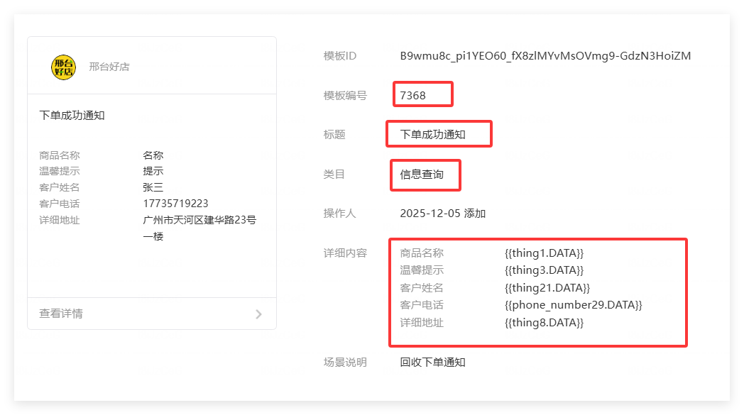 5、搜索:下单成功通知,找到目标订阅模板,模板编号7368