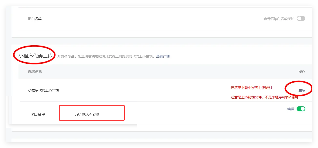 2、需要获取小程序代码上传秘钥,并将秘钥文件下载到本地