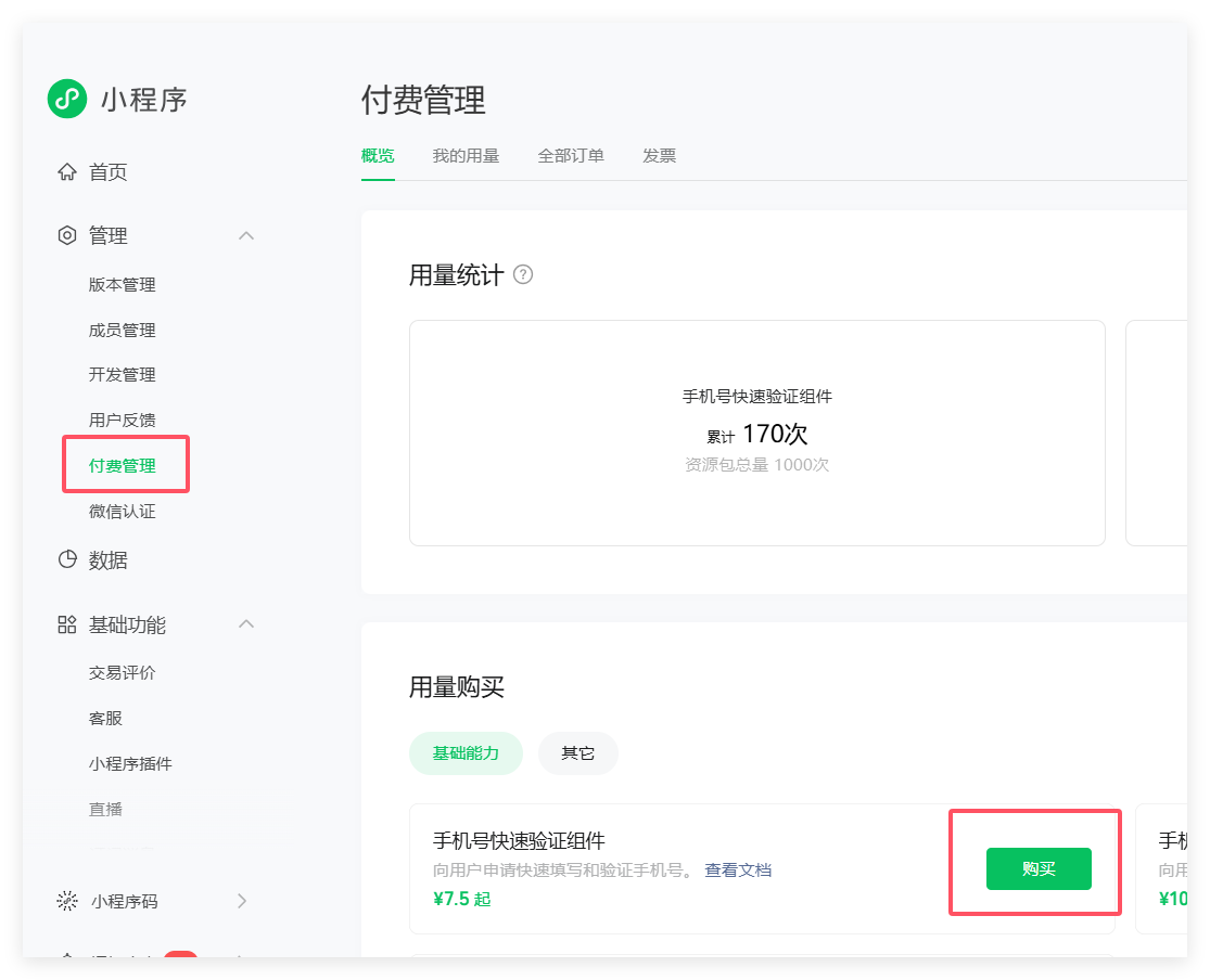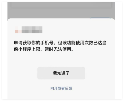 表示你的获取手机号额度已经用完,需要登陆小程序平台购买额度: