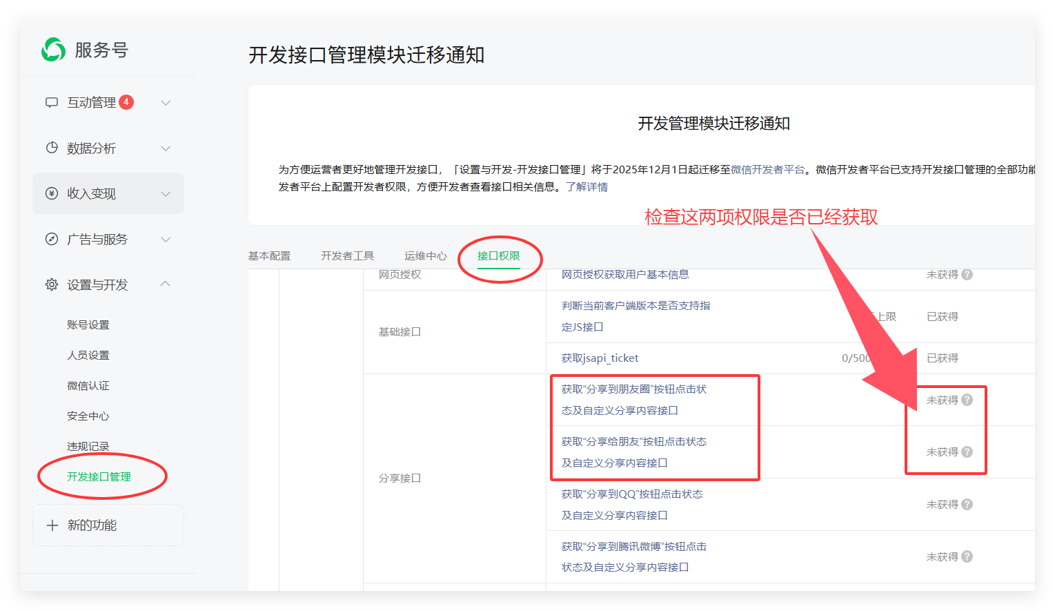 2、检查分享接口权限是否开通了