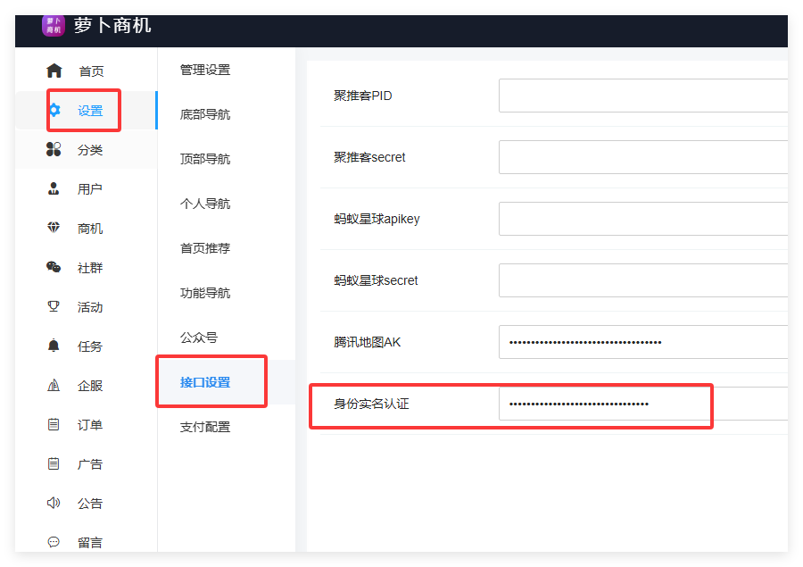 购买后,在阿里云后台复制该接口的**AppCode**,填入到萝卜商机后台