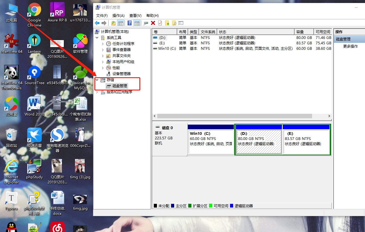 ## 2.0 假设要分配d盘,在d盘上单击鼠标右键,点击压缩卷,可以输入想要分出盘的空间,1024的倍数,比如想要分出10g,就输入10240,然后在新分出的盘上,单击鼠标右键,新建简单卷。一直点击下一步就可以了