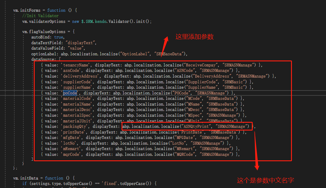 { value: 'poCode', displayText: abp.localization.localize("POCode", "SRMASNManage") },