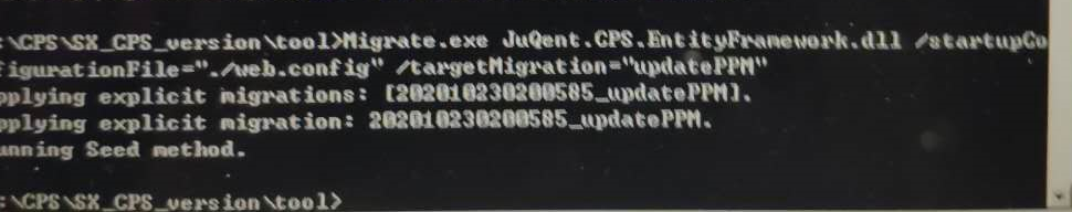 Migrate.exe JuQent.CPS.EntityFramework.dll /startupConfigurationFile=".\web.config"