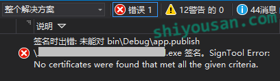 - S2017 签名时出错: 未能对 bin\Debug\app.publish*.exe 签名。SignTool Error: No certificates were found