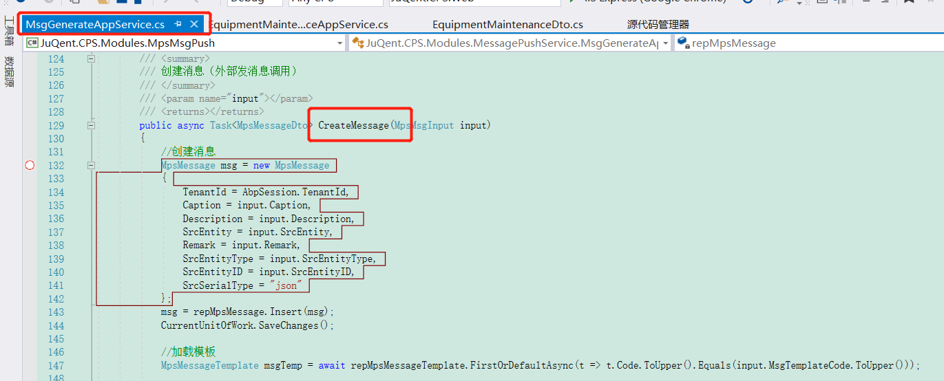 接口地址 :/api/services/mps/MsgGenerate/CreateMessage