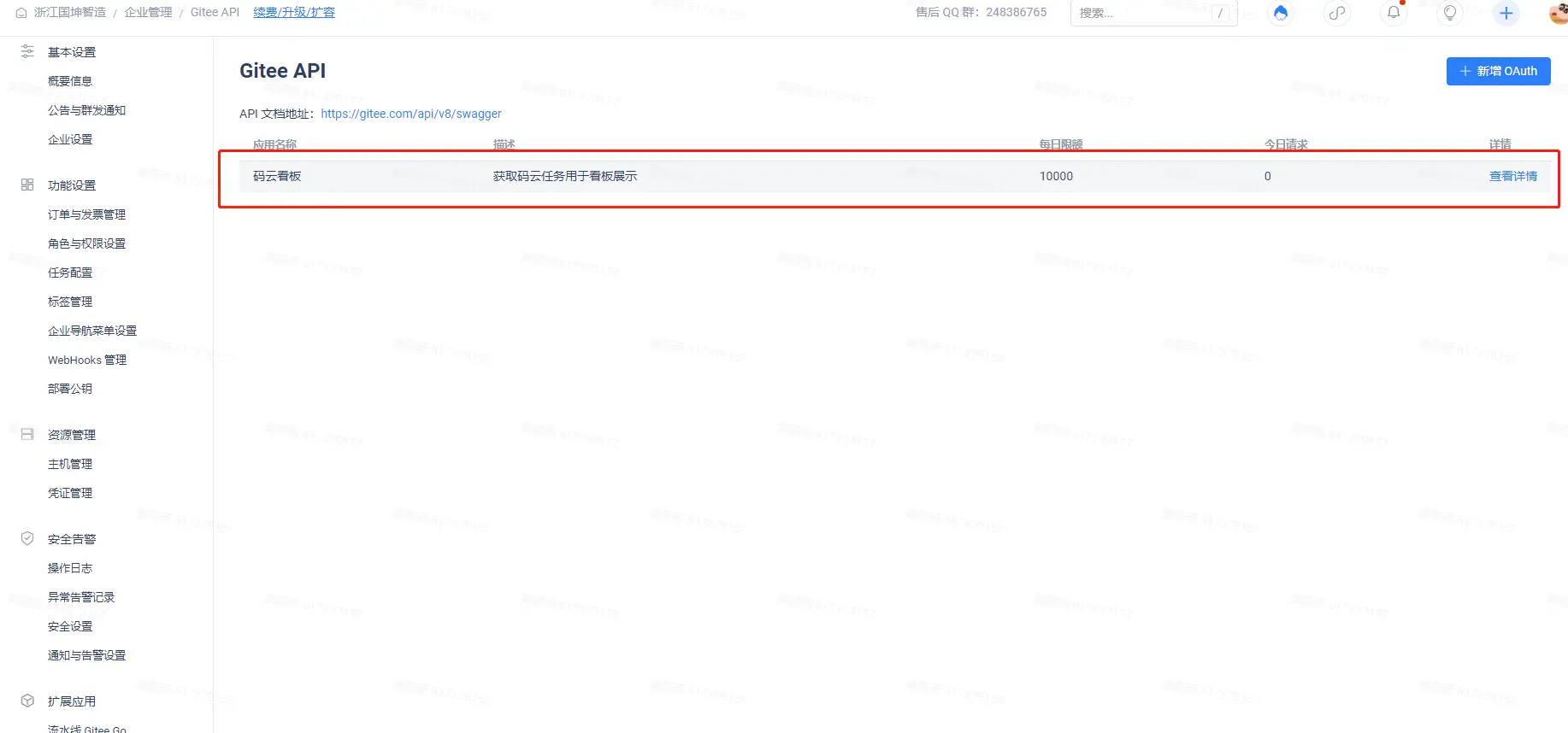 **码云接口**json :[https://gitee.com/api/v8/doc\_json?oauth\_type=enterprise](https://gitee.com/api/v8/doc_json?oauth_type=enterprise)