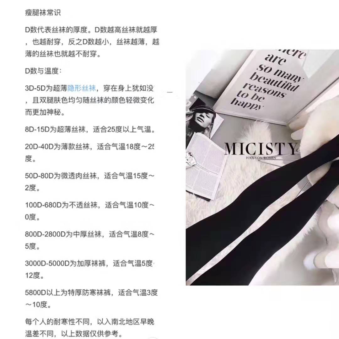 **三款黑色的瘦腿袜200D、800D、1600D都是锦纶+氨纶材质,都有收腹、提臀、瘦腿功效,都是均码、都是亚光设计不透肉,弹力都很大,都不会掉档、不会勾丝。