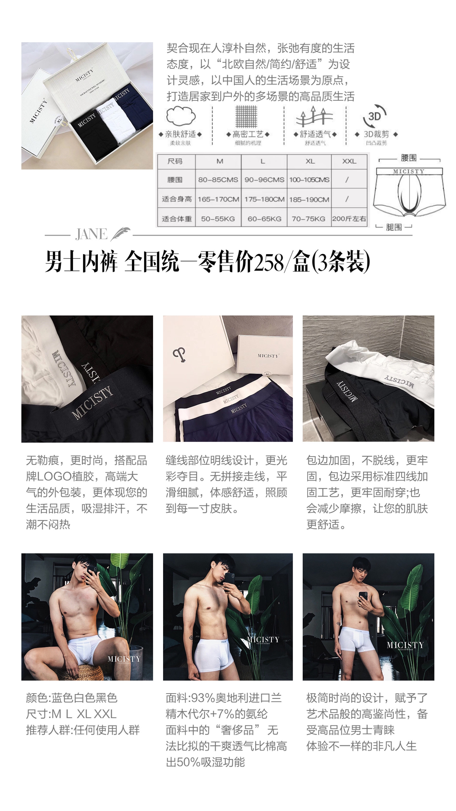 **密汐皙迪男士内裤的卖点:**