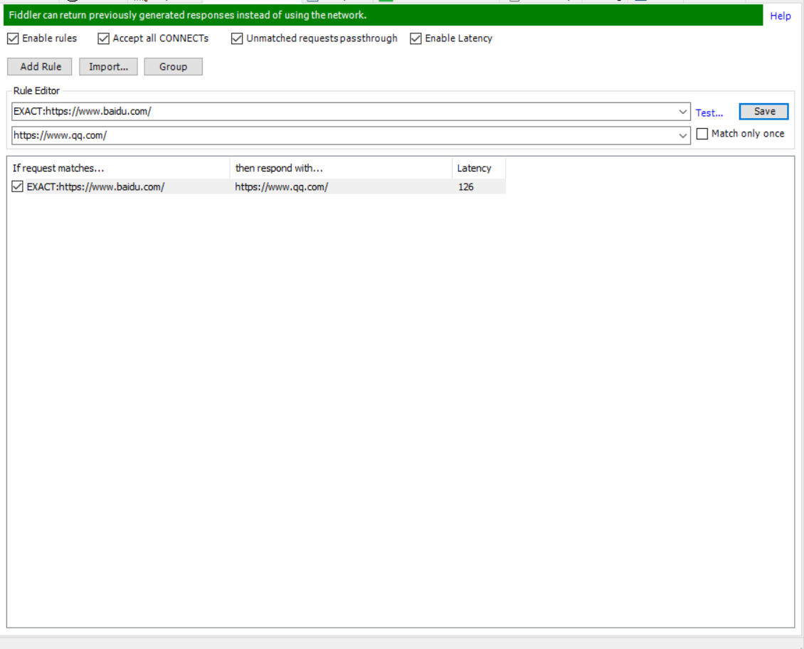 **2、勾选Enable rules 、Unmatched requests passthrough、Enable Latency 等4个选项**