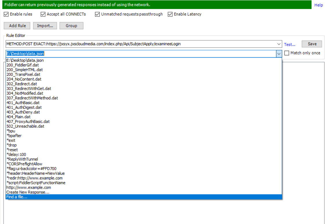 **3、根据需要可以选择匹配规则 和 对应的响应内容**