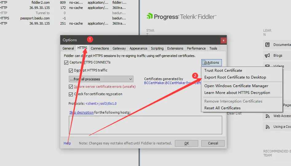 C:\Users\admin\Desktop\FiddlerRoot.cer是证书路径 myca.pem是生成的证书