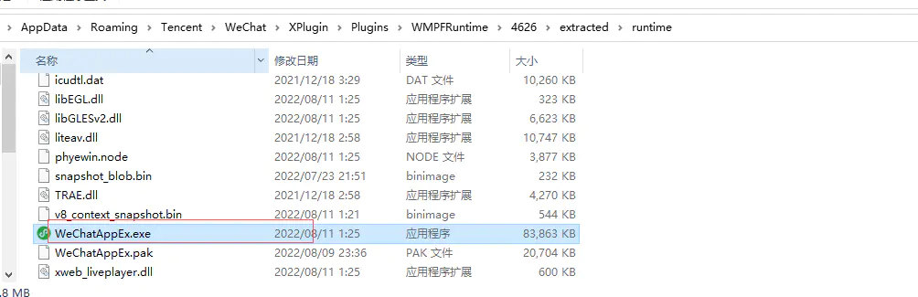 进入最新的文件目录,找到WeChatAppex.exe这个文件