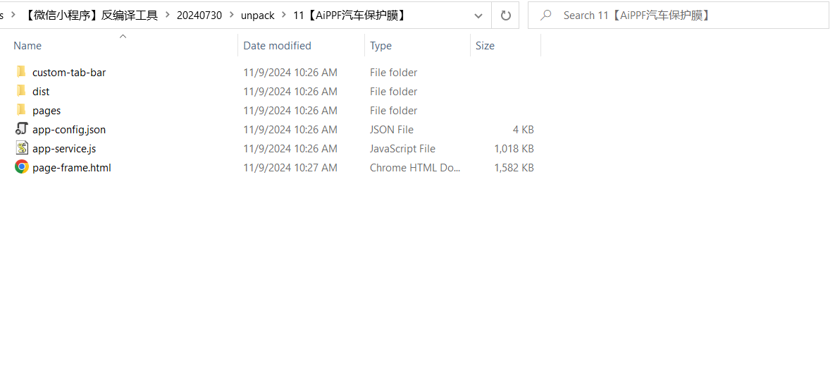wxapkg.exe unpack -r "E:\Cache\Wechat\WeChat Files\Applet\wxc9bf1ef93b03be44"