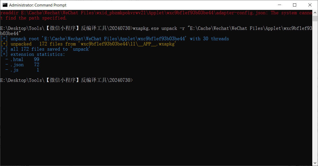 wxapkg.exe scan -r "E:\Cache\Wechat\WeChat Files\Applet"