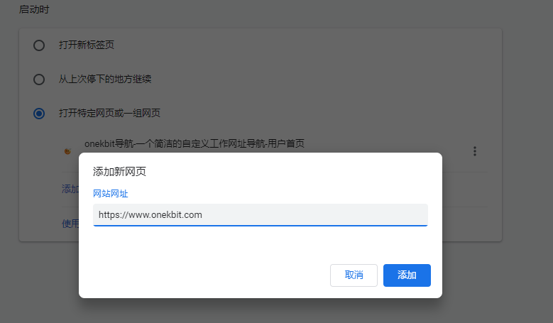 ### 1.7.2、谷歌浏览器如何设置onekbit导航成为默认主页